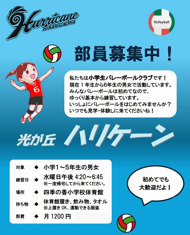 いっしょにバレーボールをはじめてみませんか?いつでも見学体験しに来てくださいね!
